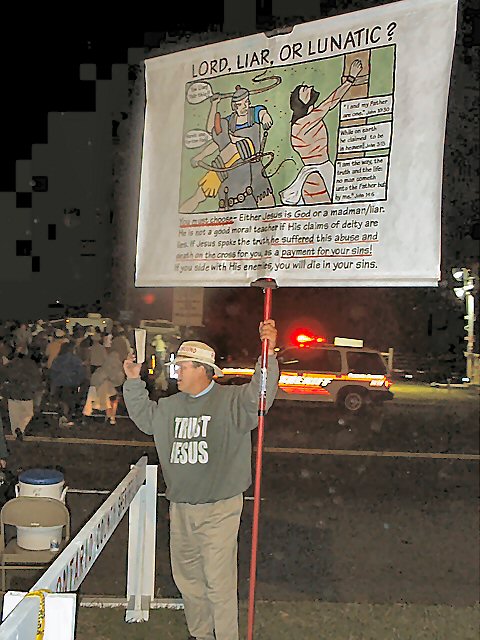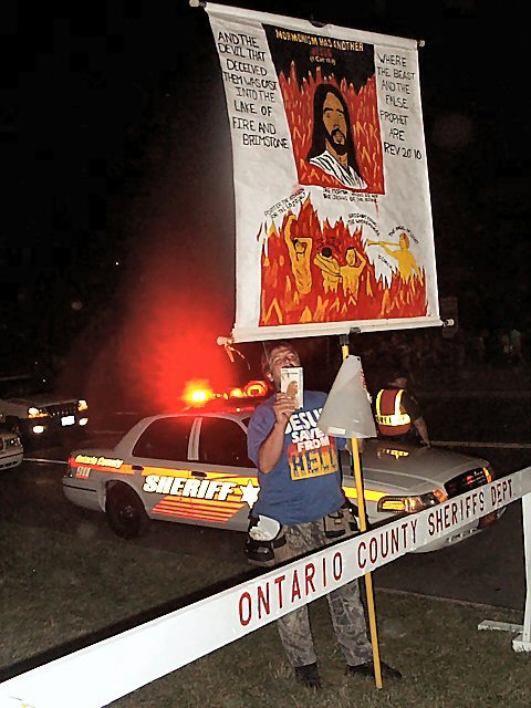 no actually these guys were there to protest the mormon religion.... that surprised the hell outta me.. as this guy was there bitching about something or other about the mormon religion and how his religion was correct.. what were they?? oh yah baptists...